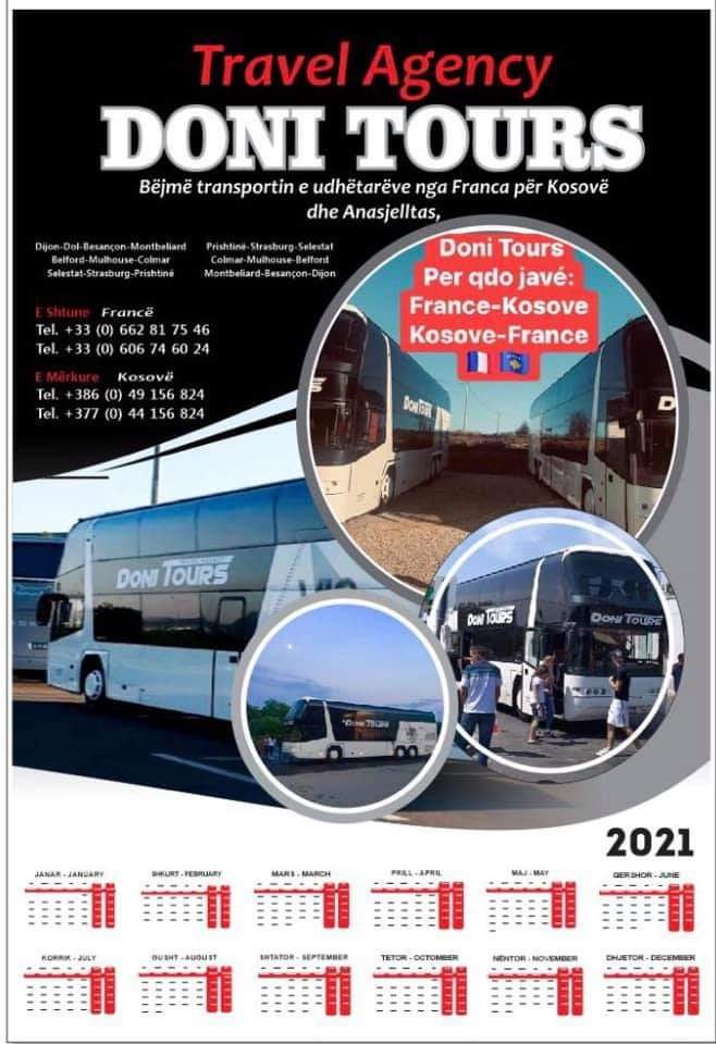 “DONI TOURS” – Bëjmë transportin e udhëtarëve nga Franca për Kosovë dhe ansasjelltas, poashtu bëjmë edhe transportin e bagazheve.